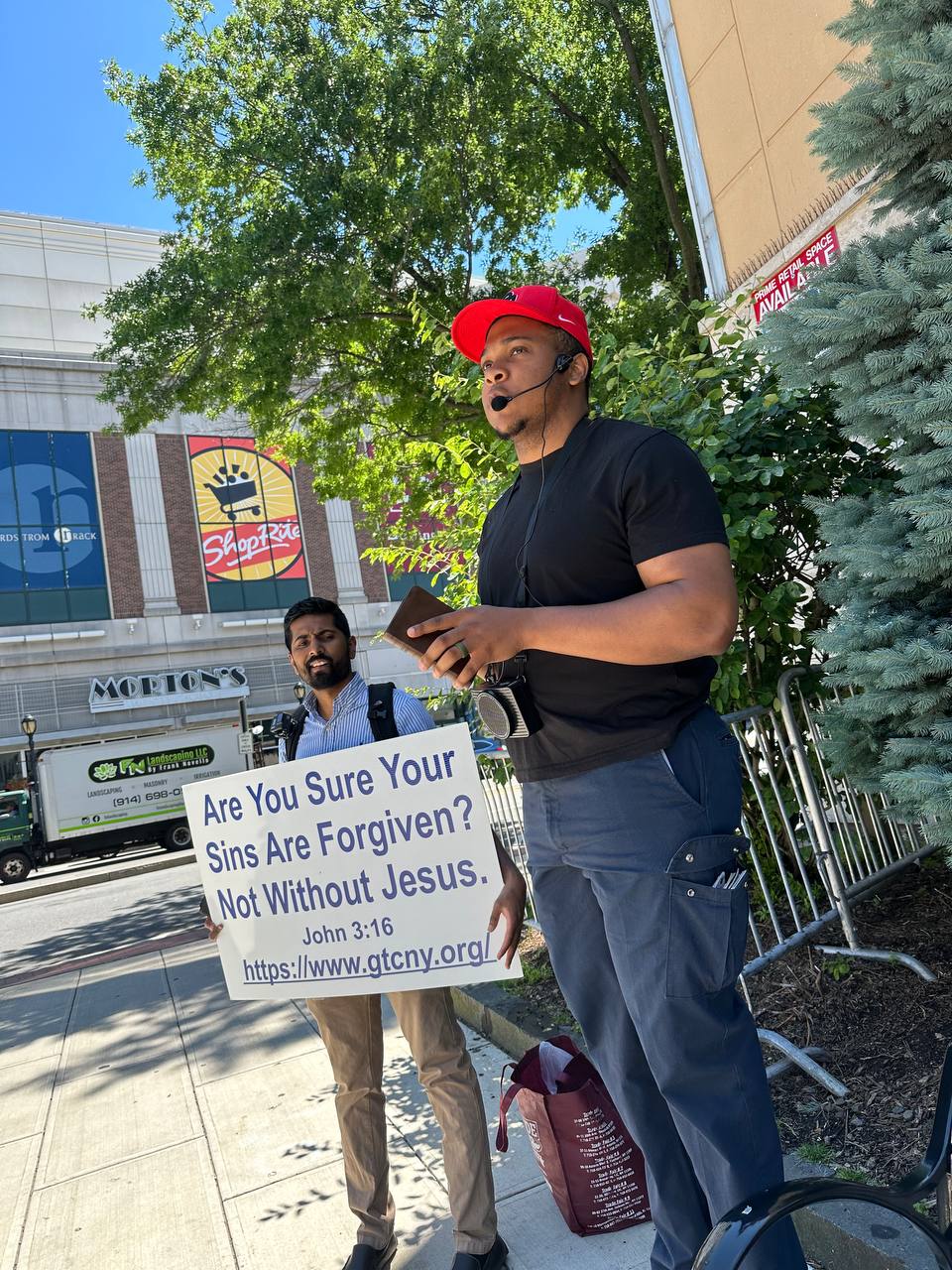 Partnering with our like-minded friends from other churches, we have a dedicated team of members who go out on a weekly basis (weather permitting), and share the gospel with the lost. We have had hundreds, if not thousands, of conversations with people on the streets, we’ve handed out thousands of gospel tracts, as well as other literature and bibles. We have currently concentrated our local evangelism efforts to the streets of White Plains.